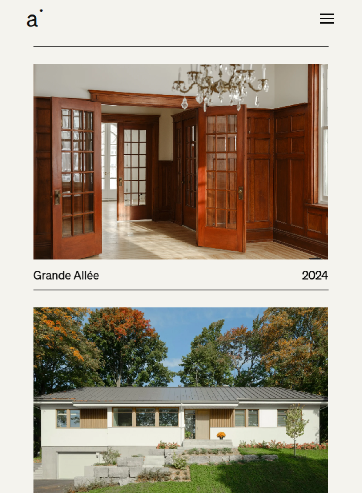 Cohabitation fluide entre deux sites d'entreprises soeurs. Une continué visuelle et narrative, subtilement orchestrée. Un cadre minimaliste qui laisse la place à la beauté des projets présentés.